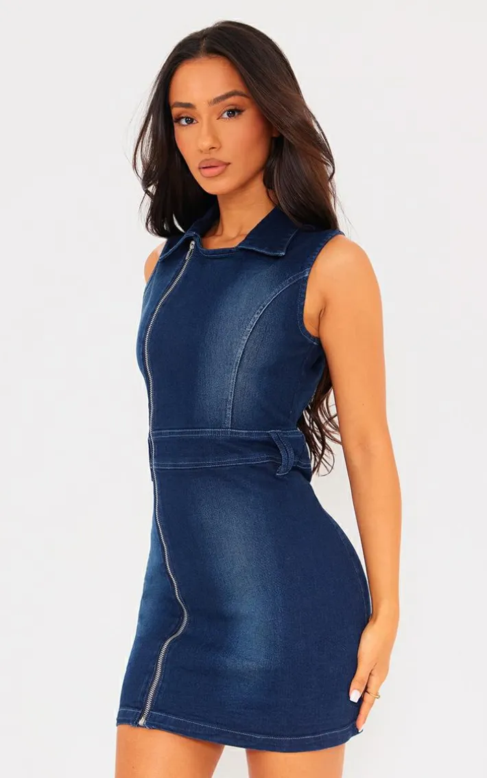 Make weekend styling simple with this petite washed indigo zip up collar detail denim dress, it is perfect for your next nightand beyond. With a washed indigo denim material, a zip up design and a figure-worshipping fit, this dress will solve all your ‘what to wear’ dilemmas. Pair this petite denim dress with clear slip-on heels and simple accessories to elevate the look further.