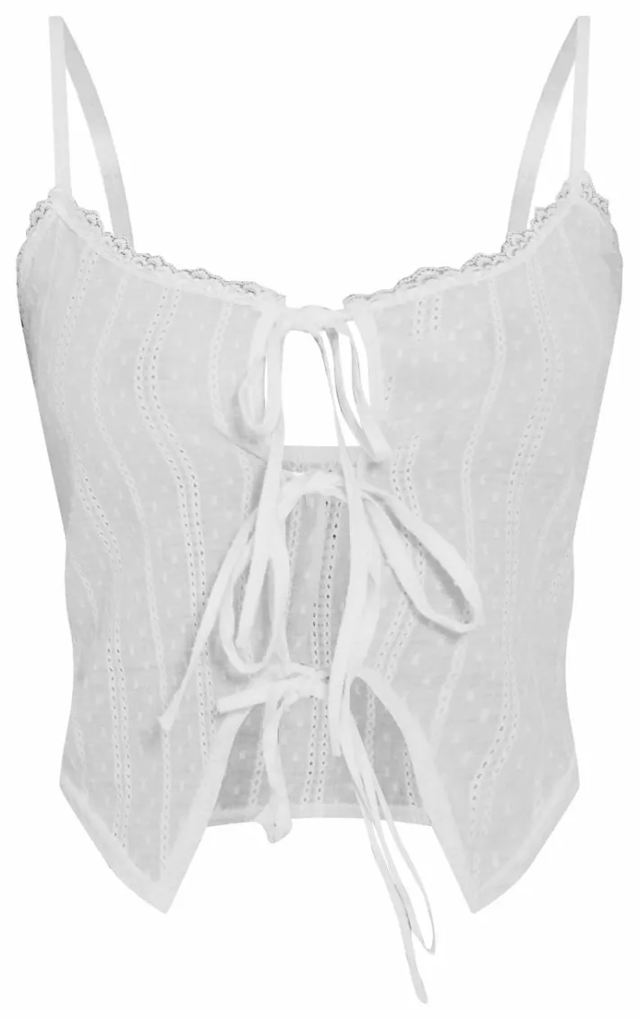 Take on your weekend the right way with this petite white broderie tie detail top. Made from a white broderie material with a tie detail, this is everything we’re loving and more. With its flattering fit, this petite top is sure to hug you in all the right places. To finish off the look, pair with your go-to jeans and your highest heels for a look that will secure you all the likes.
