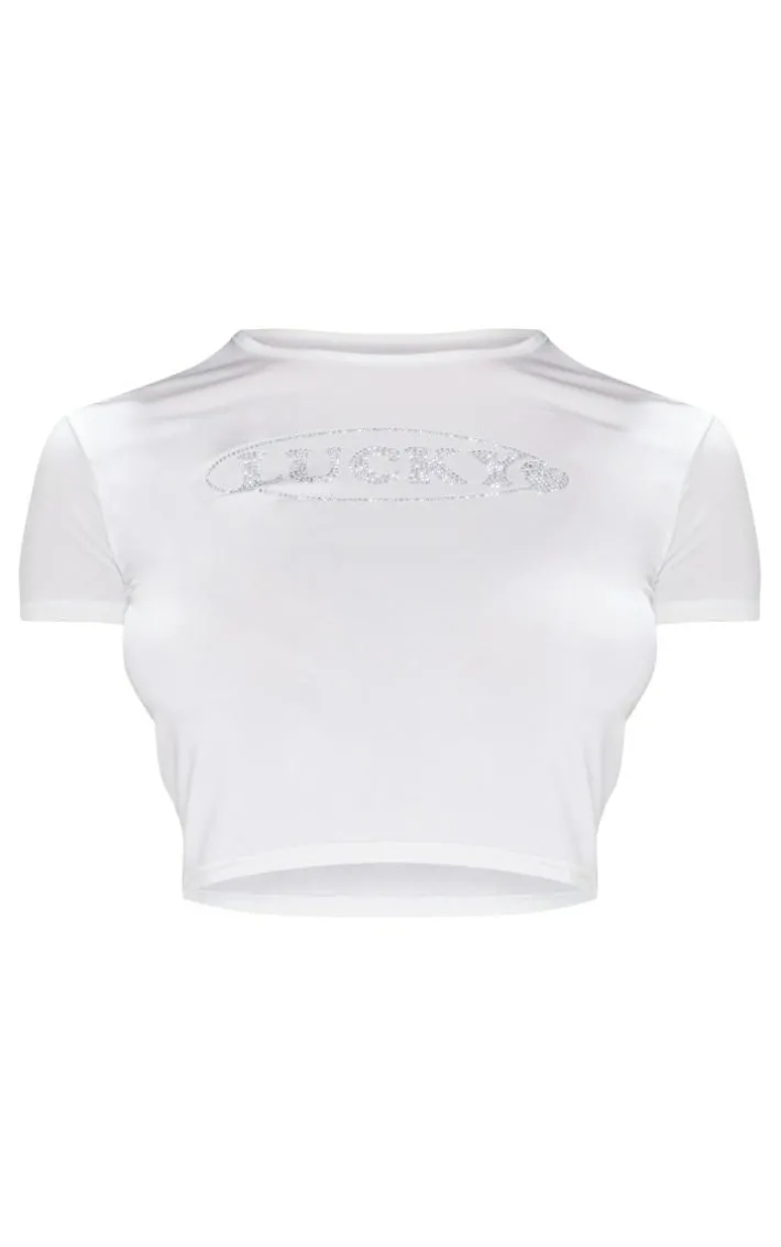 Take your off-duty look to a whole new level with this petite white lucky diamante slinky crop top. Brought to you in a white hue slinky material with a ‘Lucky’ diamante print design for that extra touch of luxe, what more could you want? Keep it casual and team this petite crop top with jeans and your go-to pair of sneakers for an everyday look like no other.