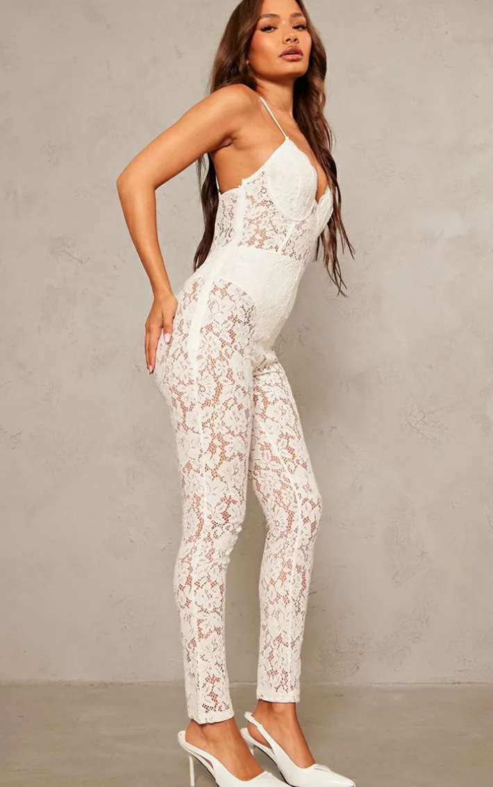 Get ready to have all eyes on you with this petite white woven lace jumpsuit. This jumpsuit is brought to you in a white woven material with lace detailing, what more could you ask for? This women’s jumpsuit with it’s figure-hugging fit will have you being the topic of everyone’s conversation. Wear with your dreamy high heels and accessories for a look that we can’t stop crushing on this season.
