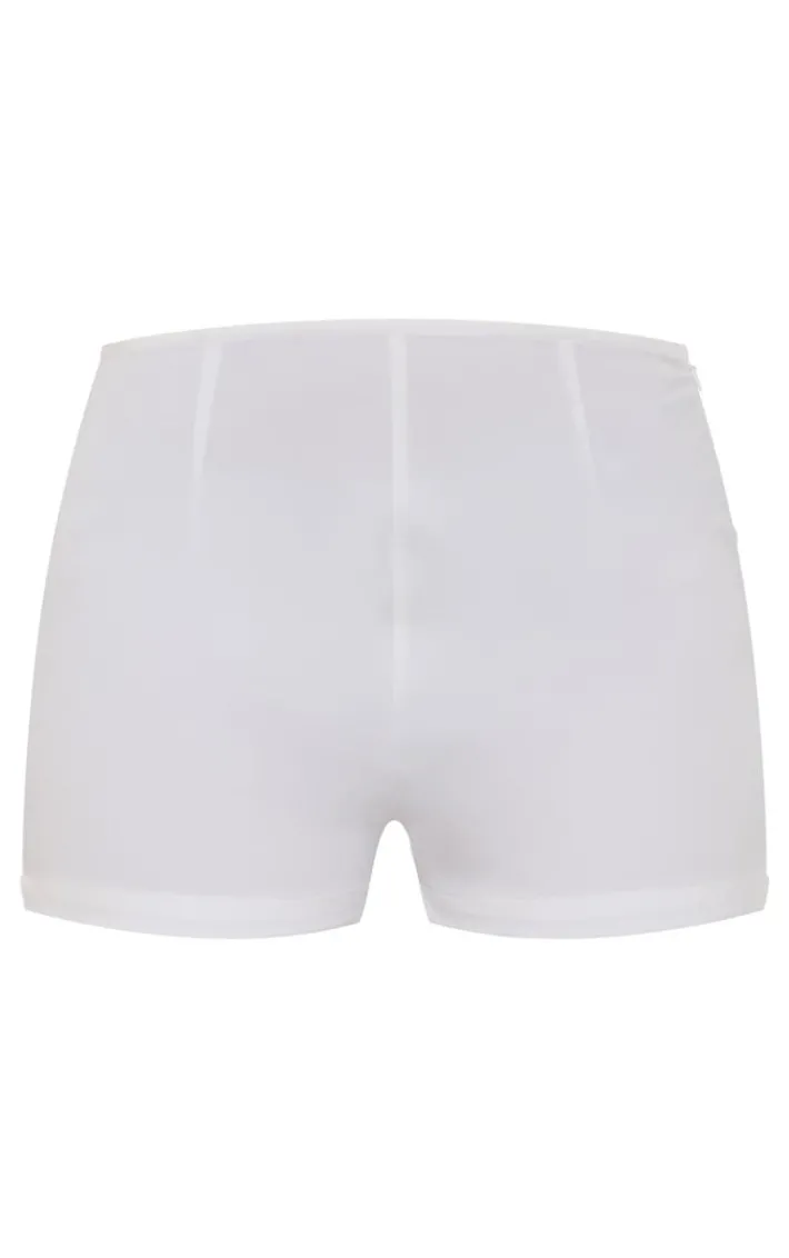 It’s official, we’re obsessed with these petite white woven low rise shorts. Brought to you in a white hue woven material with a low rise waistline, these shorts are at the top of our wish list. Style with the matching top, gold heels and a white mini bag for a chic combo we’re crushing on.