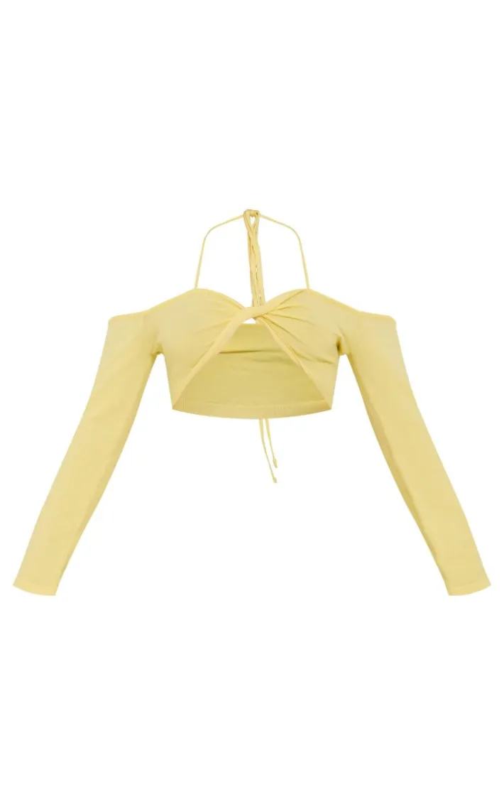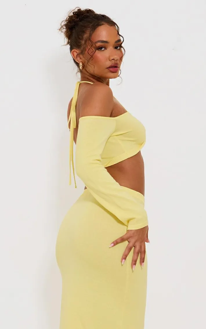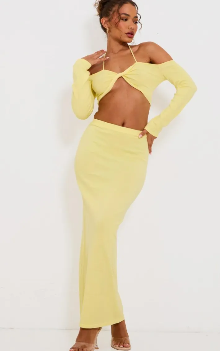 Look your most glam in this petite yellow knitted twist front long sleeve crop top. Brought to you in a yellow knitted material with a twist front detail and a long sleeve design, this crop top is everything you need and more.. How can you resist? Style with the matching maxi skirt, your fave heels and mini bag to steal all the stares.