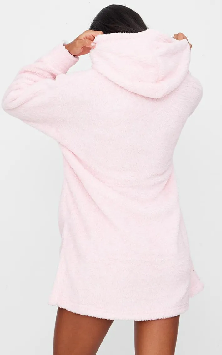 Give your lazy Sundays a new level of comfort with this hooded blanket. Featuring a pink borg material with sleeve holes and a hooded design, we are obsessed. Just add a pair of PJs and fluffy slippers to complete the look.