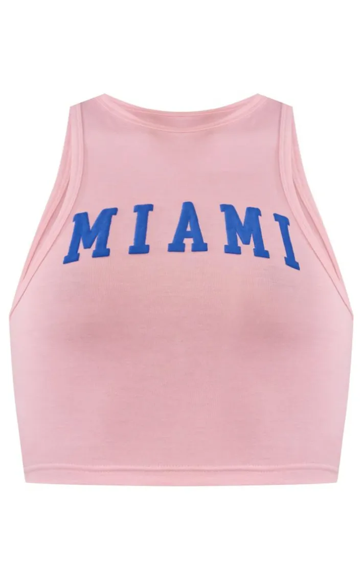 Level up your off-duty wardrobe with this pink cotton Miami printed racer crop top. This crop top is brought to you in a pink cotton material with a ‘Miami# print and a racer style, how could you say no? Whether it’s a chilled day at home or you’re running your everyday errands this crop top is the one for you. Level up the look and add blue shorts, box-fresh kicks and your everyday essentials for the ultimate combo.