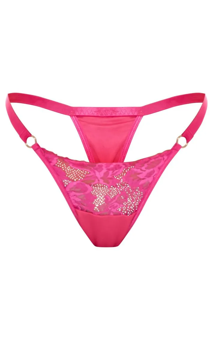 Get ready to show off your confident side in this statement pink eyelash lace thong, we’re seriously obsessed. This thong features a pink eyelash lace material with ring detailing and a figure-flattering fit, what more could you want? Style with the matching bra and your fave accessories to elevate the look further.