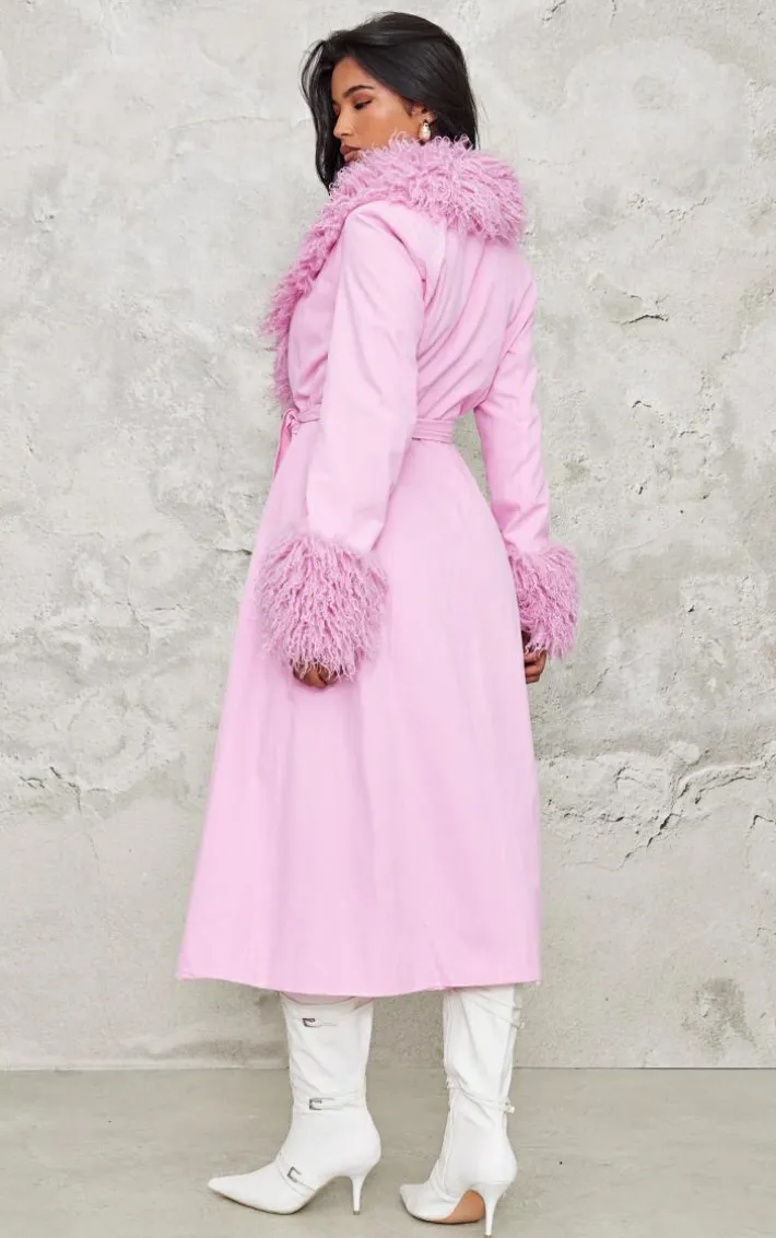 Look on-point no matter the occasion with this pink faux fur contrast collar self tie maxi coat. Its cosy faux fur and front tie make it the perfect maxi coat for cosy season walks or grabbing coffee. Team with knee high boots and chunky jewelry to channel the ultimate confidence and glam vibes.