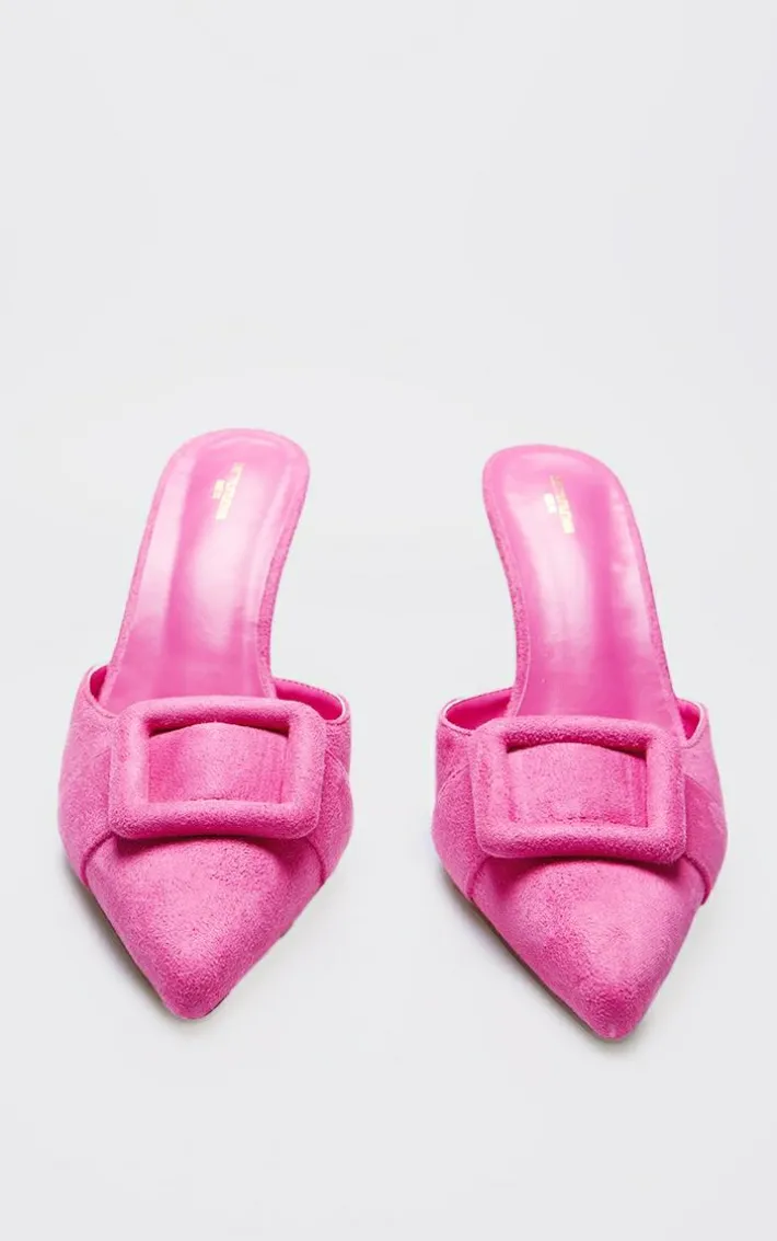 Get ready to add a pop of pink to your new season wardrobe with these pink faux suede wide fit buckle point toe heeled mules. Brought to you in a pink hue faux suede material with a wide fit design, apoint toe and buckle detailing, how can you not fall in love? Just add these heeled mules to any look for the perfect finishing touch.