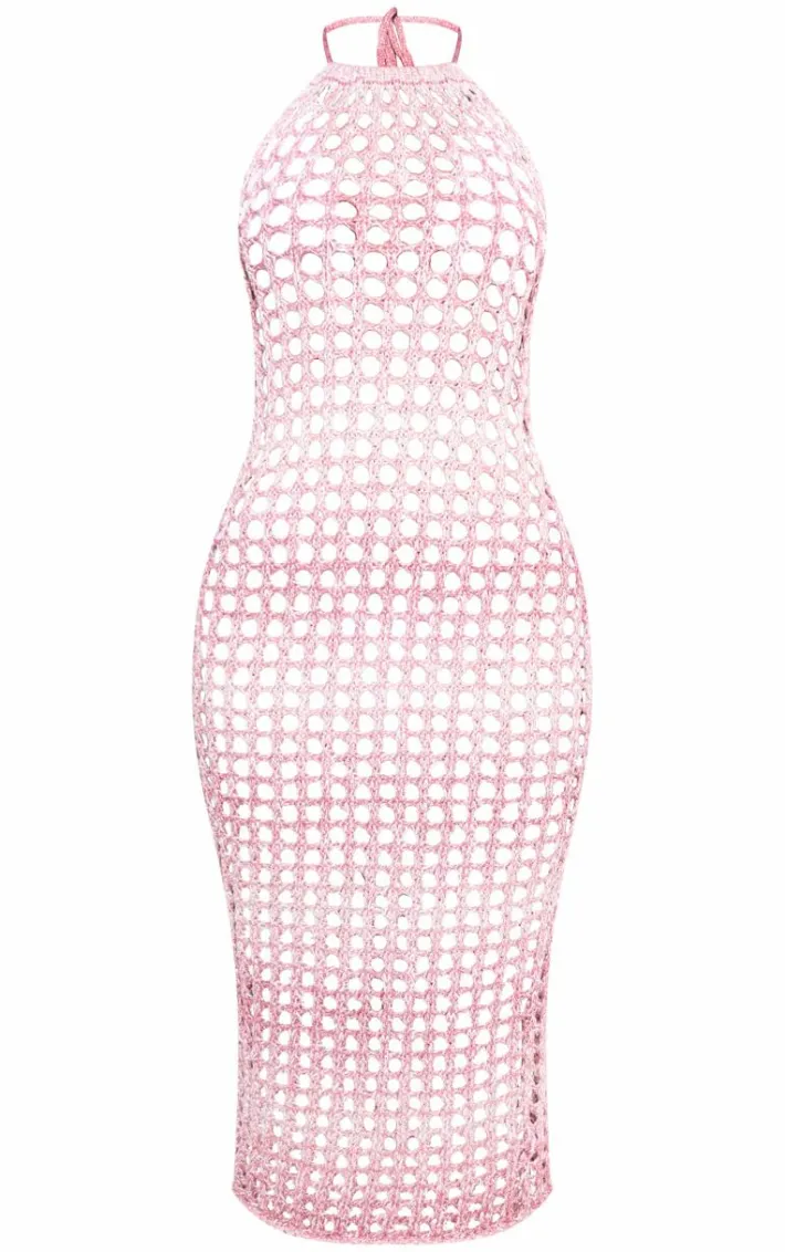Get ready to have all eyes on you in this pink glitter open knit midaxi dress. This dress is brought to you in a pink glitter open knit material with a figure-hugging fit and a midaxi length, how can you resist? This midaxi dress is everything we are loving and more. Style with strappy heels and simple accessories for a flawless finishing touch to your look.