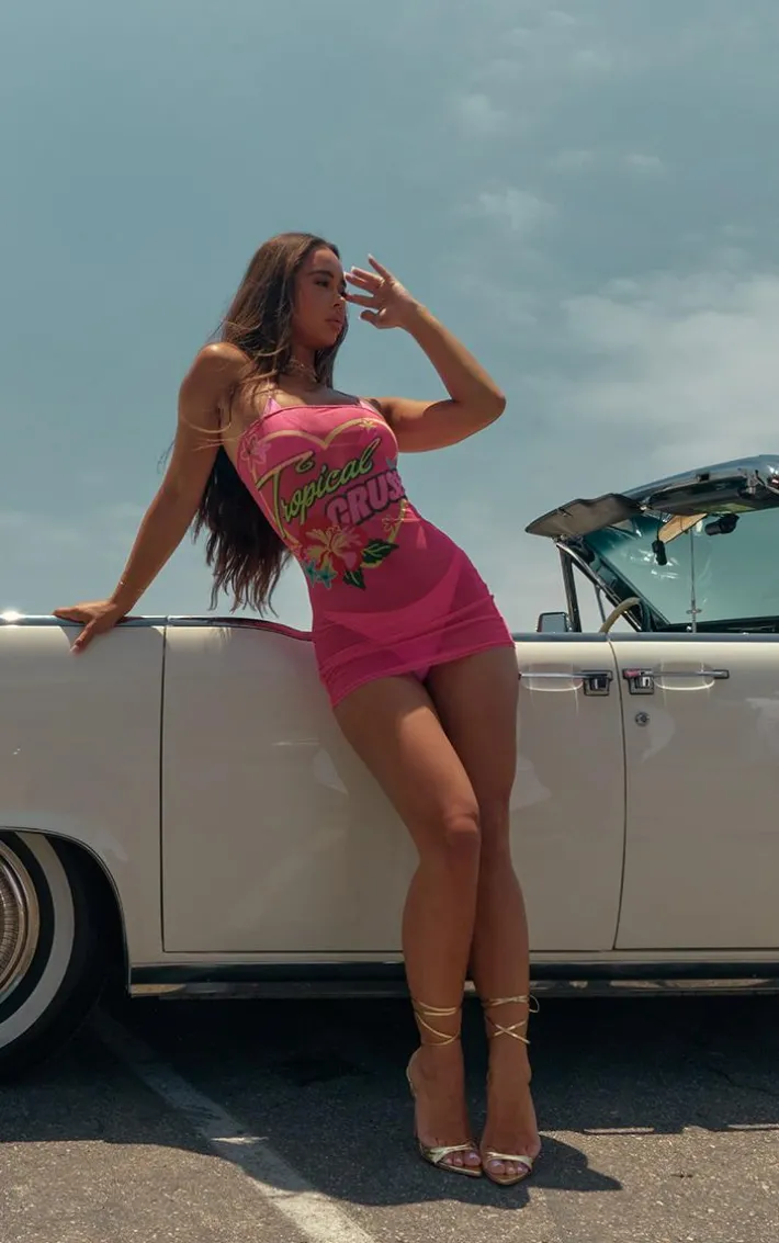 Make a statement this vacay season in this pink graphic print mesh beach cover up bandeau dress. Brought to you in a pink hue mesh material with a graphic print design and a bandeau neckline, what more could you want? Style this beach cover up over your fave bikini, heels and just add accessories to complete the look we’re loving.