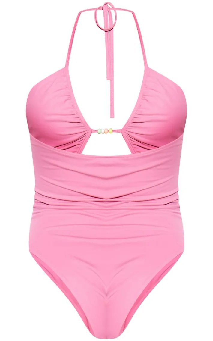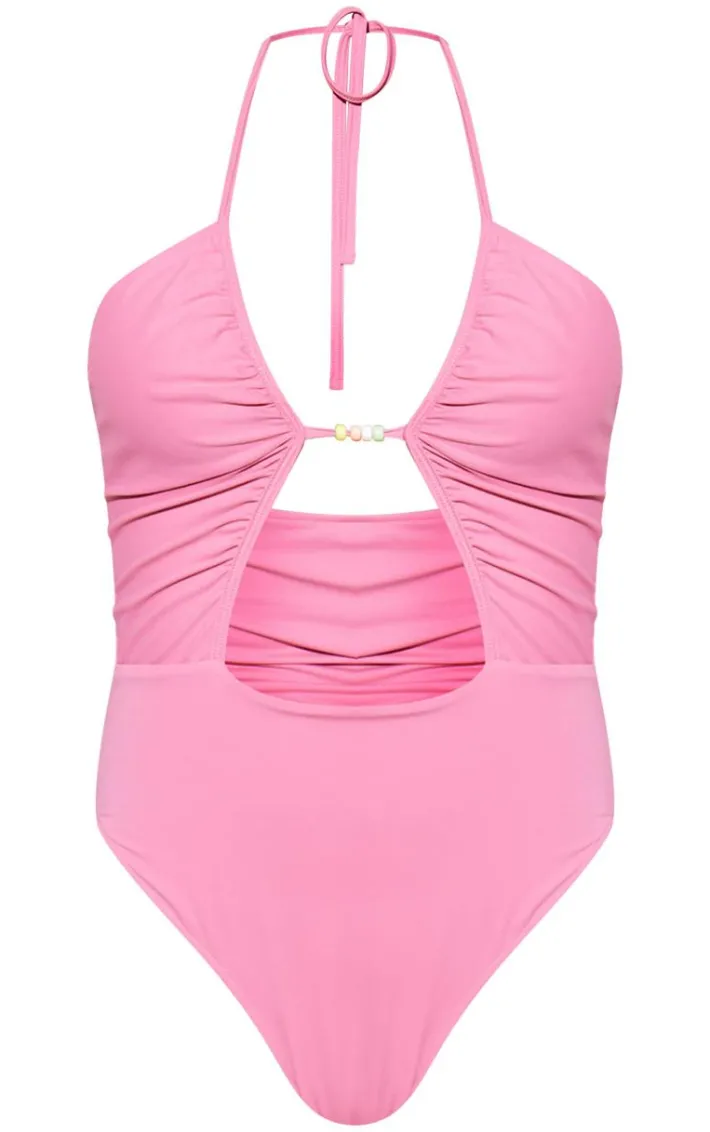 Add a pop of pink into your vacay look with this pink halter neck cut out swimsuit. This swimsuit is brought to you in a pink material with a halter neckline and a cut-out front, what’s not to love? This swimsuit is calling your name. Pair this with sandals and accessories for a vacay combo like no other.