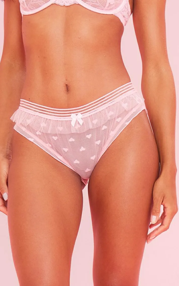 Bring all the fiercely feminine feels to your lingerie collection with these pink mesh heart detail frill panties. Made from a pink mesh material with a frilled design and heart detailing, we are in love. Style these pink panties with the matching bra for a look that will really get hearts racing.