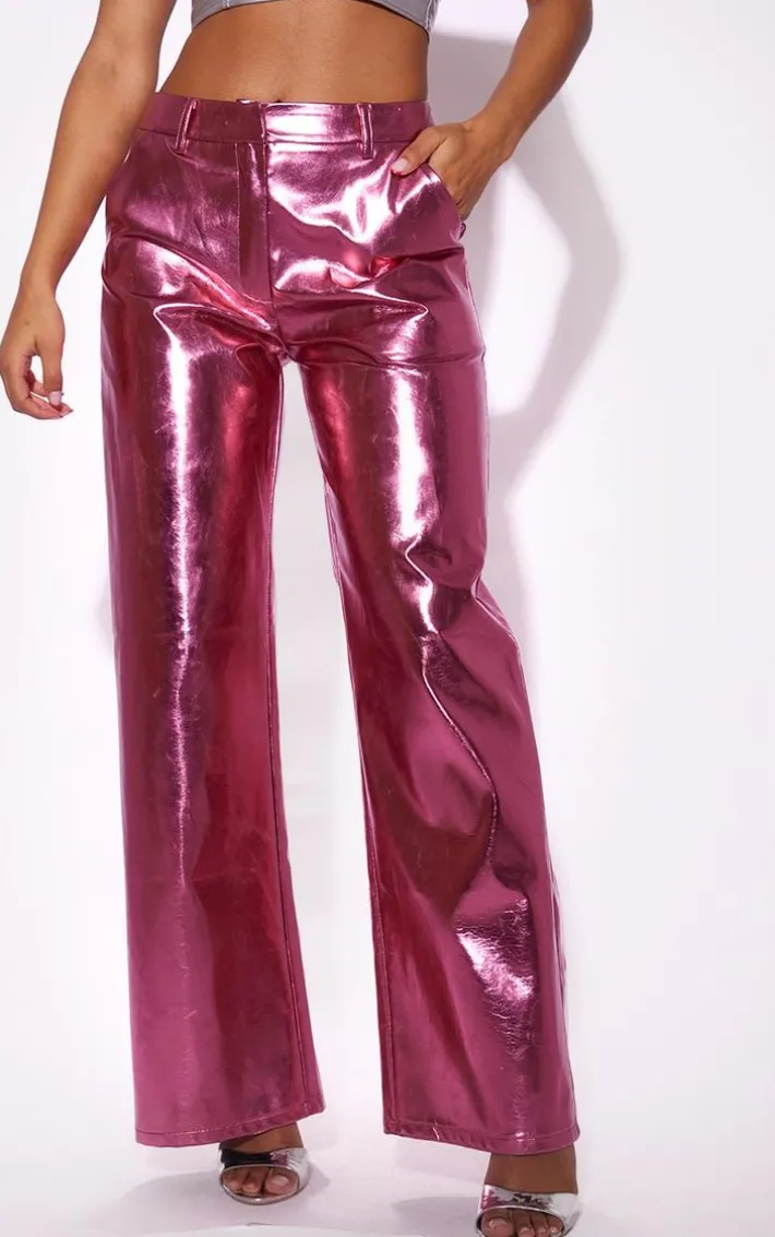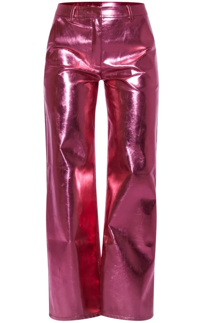 Get ready to have all eyes on you with this pink metallic faux leather straight leg tailored pants. Brought to you in a pink metallic faux leather material with a straight leg design, what’s not to love? With its tailored fit, you’ll sure to earn all the likes with this dreamy piece. Finish off the look by pairing this with a statement bandeau top and your fave heels. It’s a yes from us.