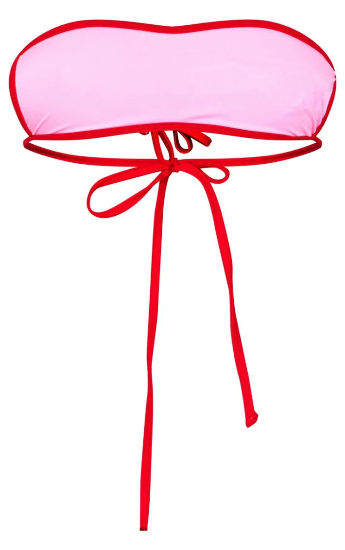 Show off your tan in this pink micro bandeau contrast bikini top. Brought to you in a pink hue material with a micro bandeau neckline and a contrasting trim, how can you not fall in love? Style this bikini top with the matching bottoms and accessories for a look that is sure to steal all the stares.