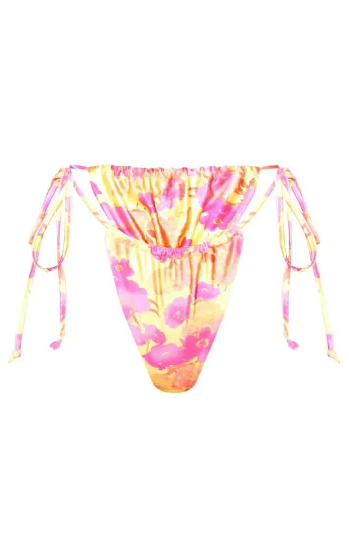 Add some statement hues to your vacay wardrobe with these pink pastel oversized floral print tie side bikini bottoms. These bikini bottoms are brought to you in a pink pastel material with an oversized floral print that is sure to have you tapping into your feminine side. With a tie side fastening, these bikini bottoms have a flattering fit you wont be able to resist. Team with the matching bikini top and some gold hoops to finish off the look.