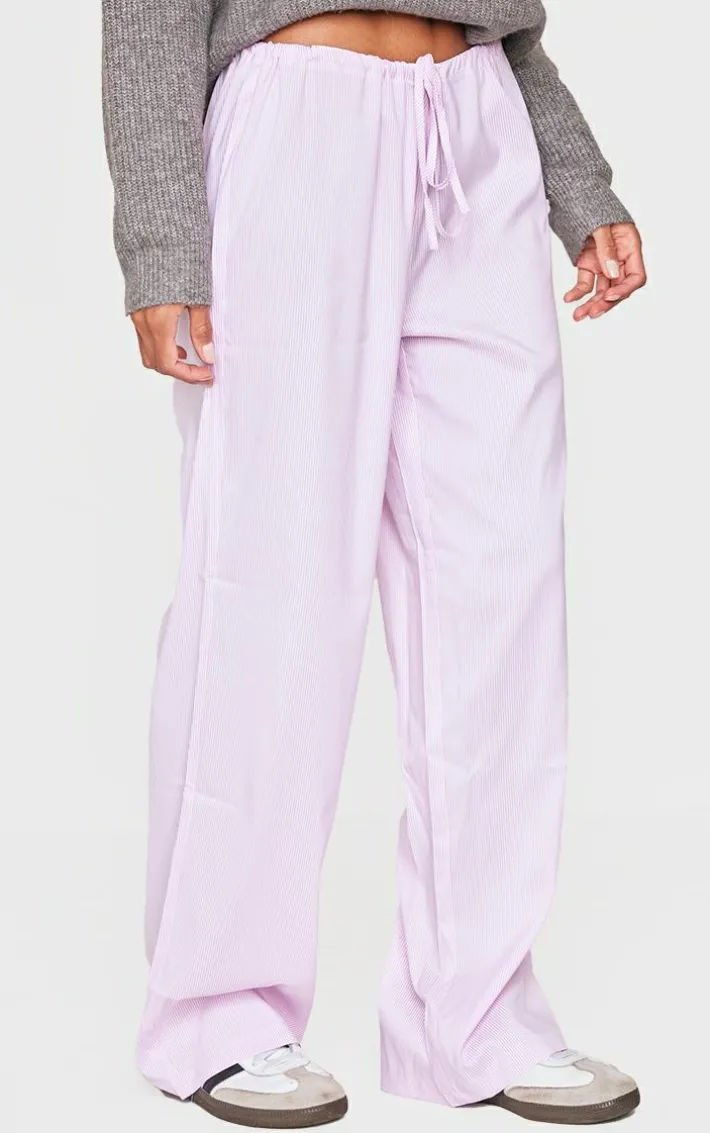 Nail new season trends in these pink pinstripe low rise drawstring waist pants. Brought to you in a pink pinstripe material with a low rise design and a wide leg fit, how can you go wrong? Work your styling techniques to make these pinstripe pants perfect for any occasion. Shop the look and team with a crop top and flatform sandals for an outfit we’re loving.
