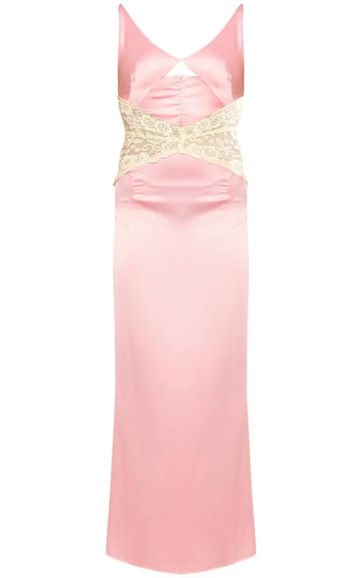 Take on your weekend the right way with this statement pink satin lace insert maxi dress. Made from a pink satin material with a lace insert and a maxi length, this is everything we’re loving and more. With It’s figure-hugging fit this maxi dress is sure to hug you in all the right places. To complete the look style this seamlessly with high heels and accessories for a look that will secure you all the likes.