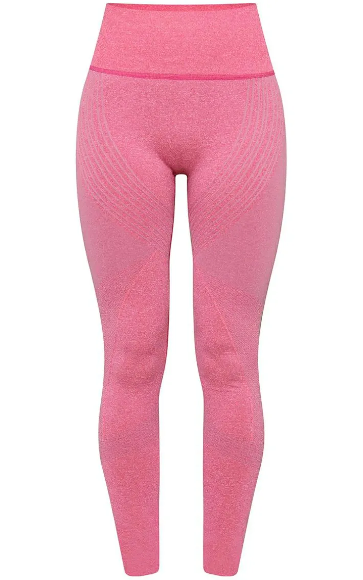 Amp up your gym look with these pink seamless high waist leggings. Brought to you in a pink hue material with a high waist design and a figure-hugging seamless fit, what more could you ask for? Team these pink leggings with a sports bra, sneakers and your go-to accessories for a workout-ready look that won’t go unnoticed.