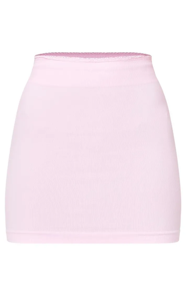 Add a pop of pink to your new season wardrobe with this pink seamless lace trim contour mini skirt. Brought to you in a pink seamless material with a lace trim design and a contouring fit, what’s not to love? Style this mini skirt with a white tee, fresh kicks and your go to accessories for a look that won’t miss.