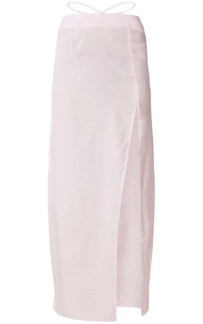 Channel all the dreamy feels with this pink sheer woven tie waist split thigh maxi skirt. This skirt is brought to you in a pink sheer woven material with a tie waist and a split thigh design, what’s not to love about this? From your vacay to your weekend wardrobe this maxi skirt is everything we’re loving right now. Complete the look and add a corset top, sandals and accessories for a next-level look.