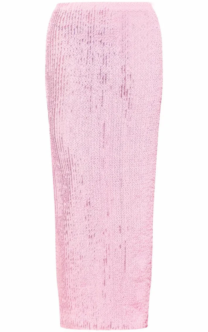 Have all eyes on you in this pink textured jersey split side maxi skirt. Brought to you in a pink textured jersey material with a split side detail, this maxi skirt is a must-have. Style with a white top, heels and pink mini bag for a luxe look we’re loving this season.