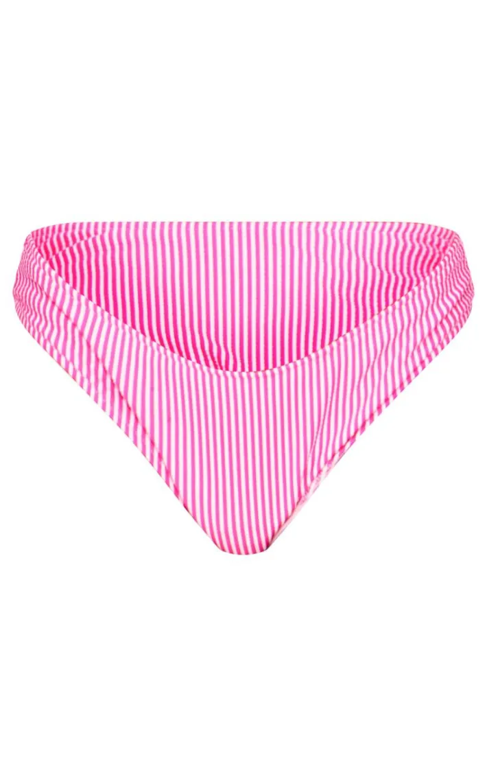 Achieve that sun-kissed look this season in these pink textured stripe high leg bikini bottoms. Brought to you in a pink textured material with a stripe design and high leg detail, what’s not to love? Style these bikini bottoms with the matching bikini top and gold accessories for a pool-side look we can’t get enough of.