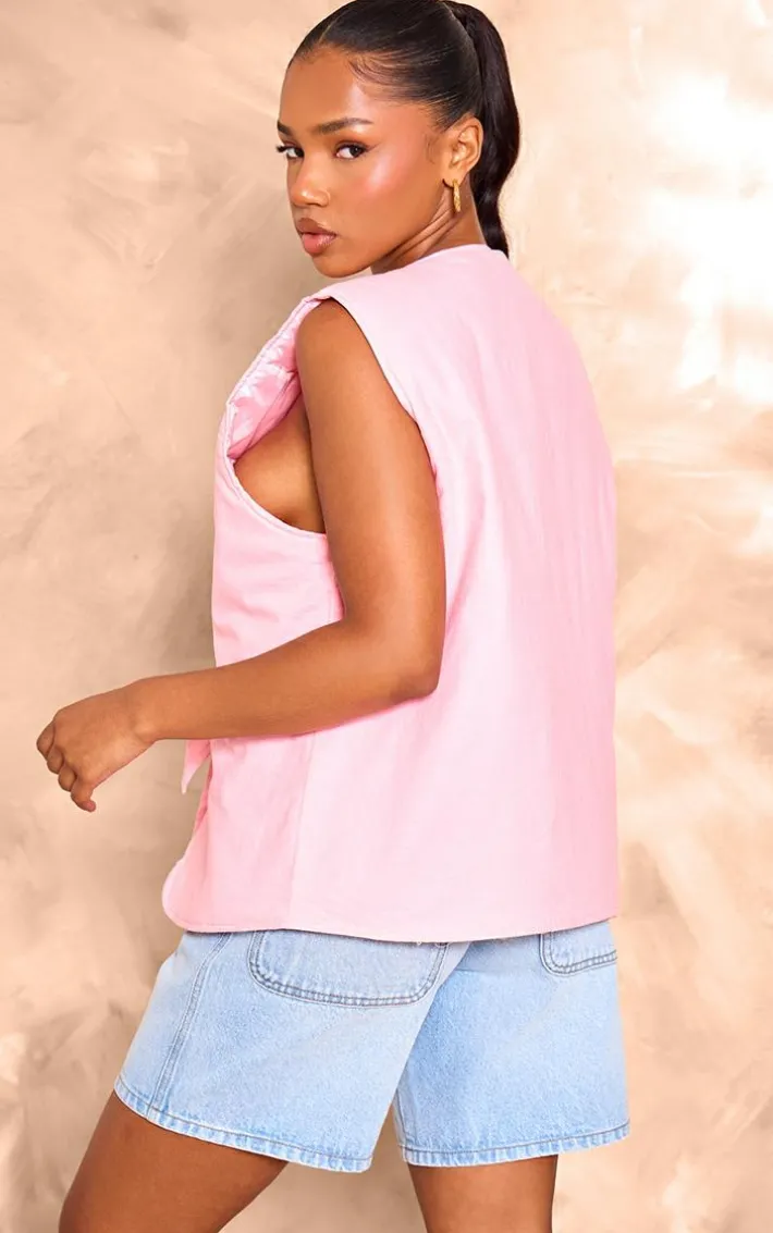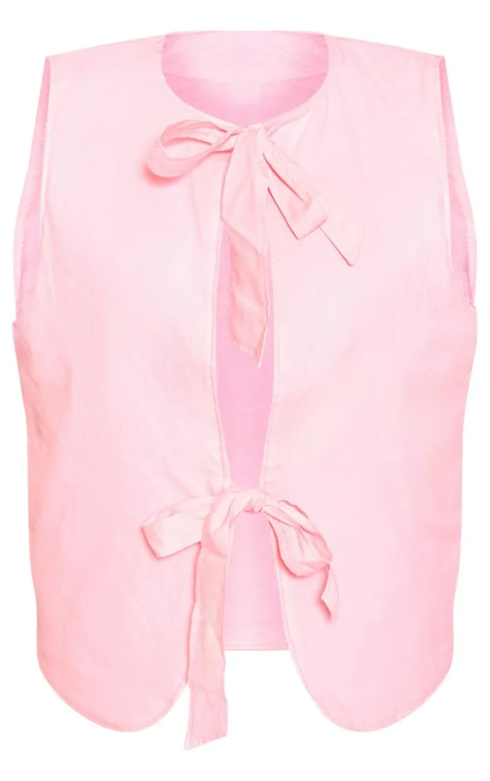 Create a look no one will forget with this pink tie front cotton vest. Brought to you in a pink cotton material with a tie front and a vest style, this will have you standing out from the rest. Style with a denim mini skirt, sandals and accessories for a combo we can’tstop crushing on.