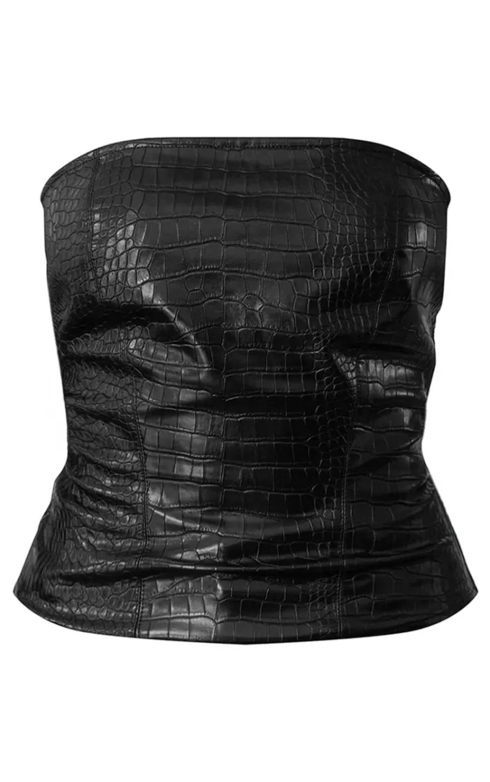 We’re crushing on this PLT label black croc faux leather bandeau corset. Brought to you in a must-have black shade, with a croc design, faux leather material and a bandeau neckline, you’ll be the best dressed at every occasion. Style with the matching croc pants and a pair of your best heels to make a statement that won’t be forgotten.
