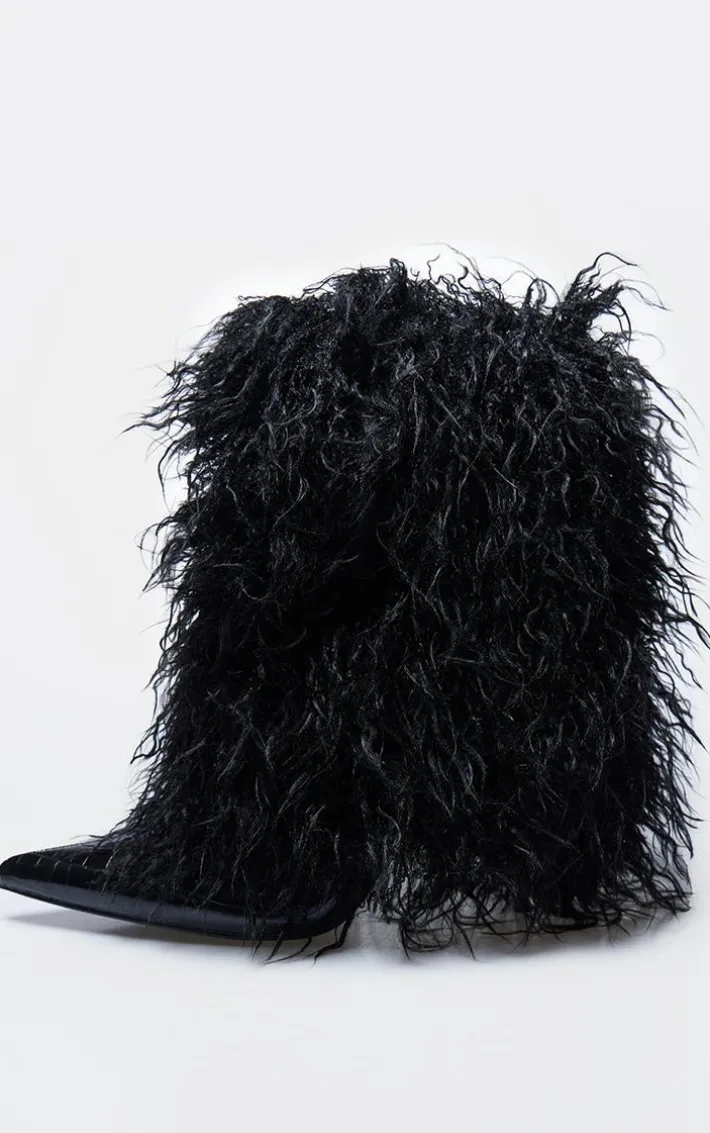 How can you resist these PLT Label black faux shearling high heeled ankle boots? Brought to you in a black faux shearling material with a high heel, these ankle boots are calling your name. Style with your fave fit for an elevated finish everyone will be asking about. New boots have landed, cosy chic season starts here.