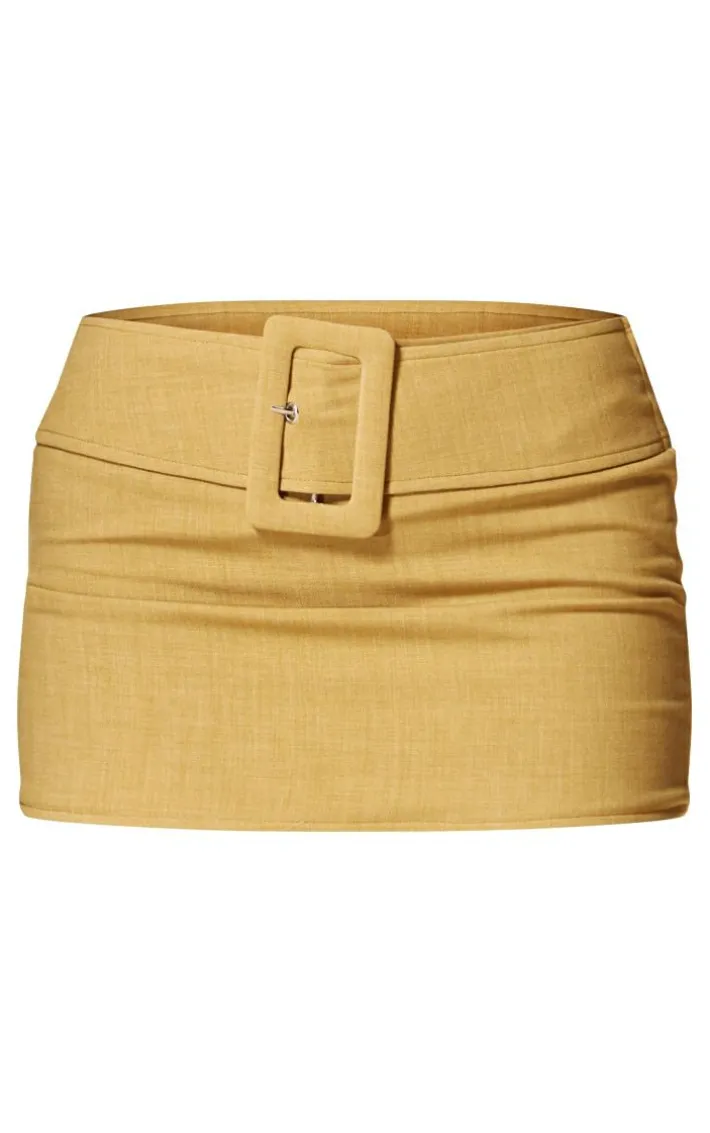 Switch up your weekend style game with this PLT label mustard belt detail low rise micro mini skirt. Brought to you in a mustard hue material with a low rise design, belt detailing and a micro mini skirt, how can you resist? Style this micro mini skirt with the matching cropped blazer and heels for a look that will have eyes on you for all the right reasons.