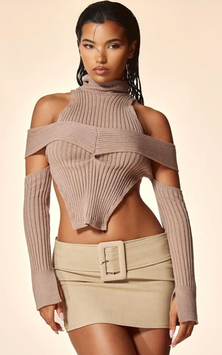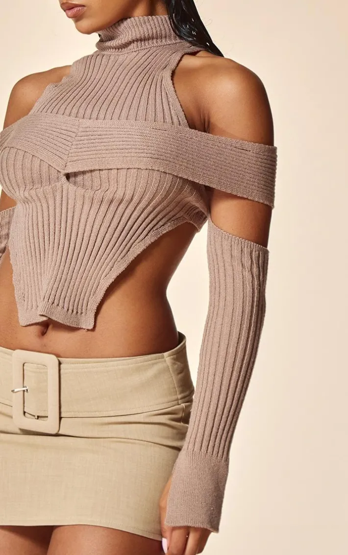Inject all the luxe vibes into your wardrobe with this PLT label taupe cut out knitted long sleeve top. Its taupe knitted material is calling out to all our neutral-loving s and its cut-out design gives you that weekend-worthy touch. This long sleeve top is sure to steal all the stares and gain all the compliments which we know you can’t resist. Team with a mini skirt and court heels for a flawless finish.