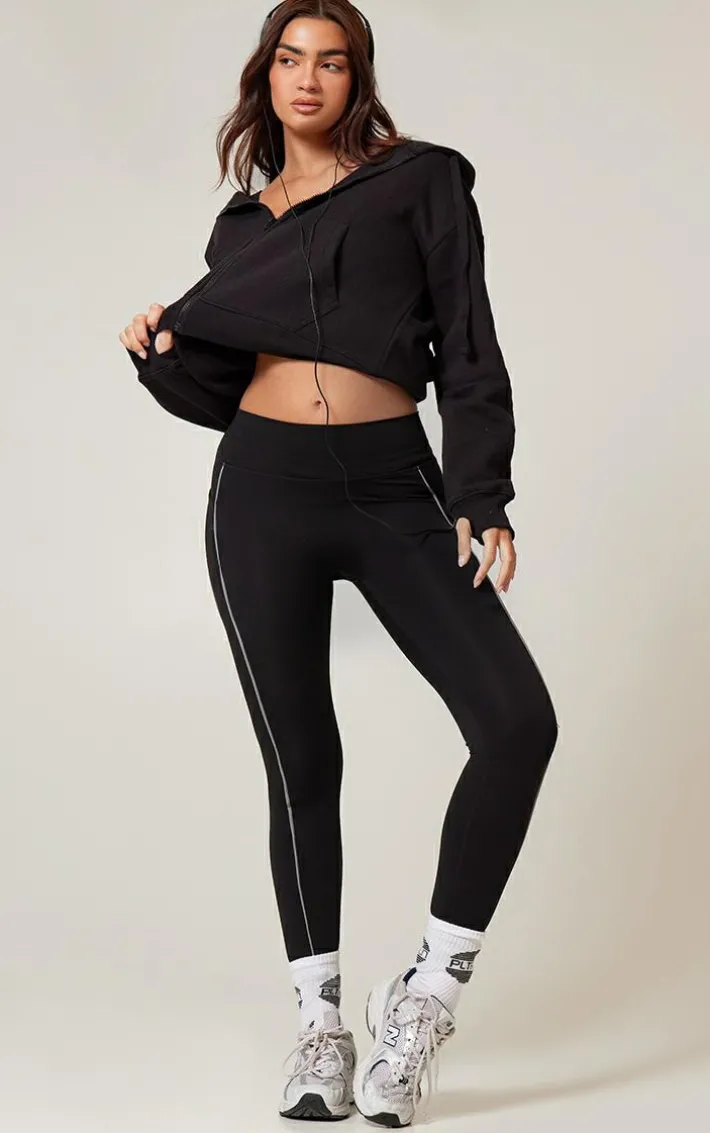 Your wardrobe is calling out for these PLT run black sculpt reflective pocket detail leggings for your new season look doll. Brought to you in a black sculpt material with a reflective pocket detail, how could you resist? These leggings are all you need for those run club plans with the dolls. Team with a a crop top and your fave sneakers for a weekend-worthy finish.