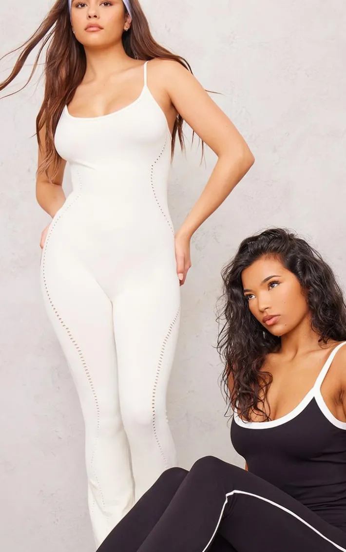 Take on those off-duty days the right way with this PLT Sport bone seamless laser cut strappy gym flare unitard. Brought to you in a bone seamless material with a lacer cut detail, you will have hearts racing no matter what. With a strappy design and a flare fit, this unitard is all you need for those gym days. Style with your fave sneakers and accessories to finish off the look we are loving.