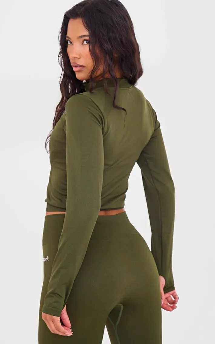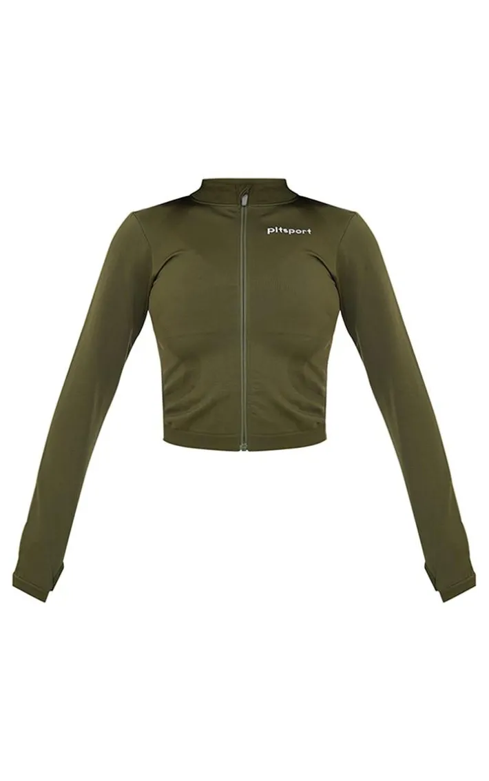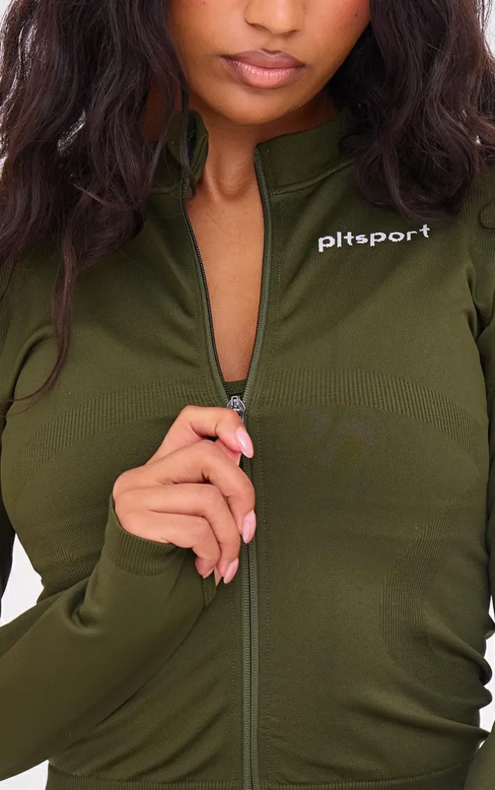 Your wardrobe is calling out for this khaki PLT sport seamless ribbed detail zip up sports jacket for your new season look. Brought to you in a khaki seamless how could you resist? Its ribbed detail and zip up fastening are perfect for those gym days and beyond. Team with the matching leggings and a pair of sneakers for a fool proof finish.