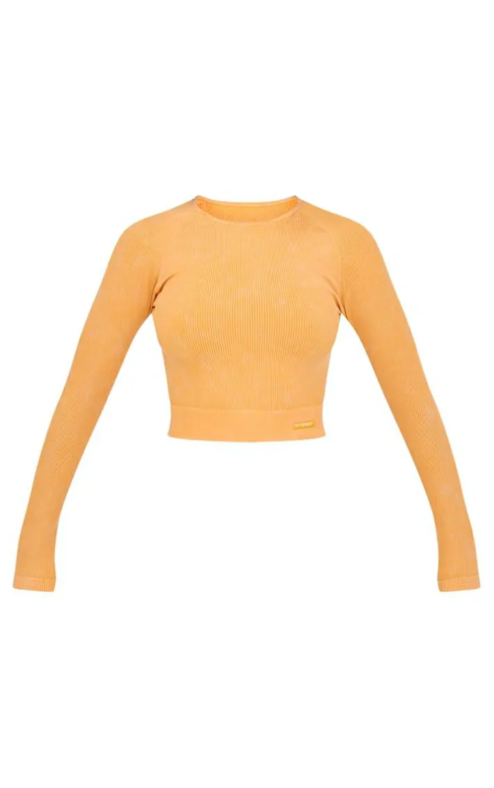 Brighten up your activewear collection with this PLT Sport mustard acid wash seamless rib long sleeve sports top. Brought to you in a mustard acid wash seamless rib material with long sleeves and a cropped fit, what more could you want? Pair this sports top with the matching shorts, sneakers and your everyday accessories for an outfit that will have everyone in the gym looking your way.