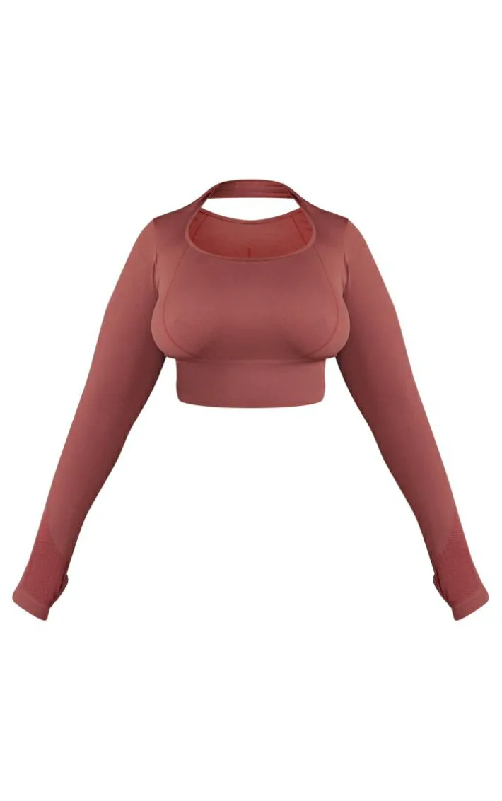 Be on trend this season with this PLT Sport plus espresso seamless contrast long sleeve crop top. Brought to you in an espresso seamless material with contrasting long sleeves and a cropped length, you will bring all the edge to your outfit of the day. This crop top is perfect for those on the go days. Team with the matching bottoms, box-fresh kicks and your everyday essentials to be the center of attention wherever you step foot this season.