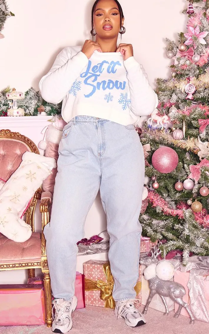Go for all the festive vibes this season with this plus baby blue let it snow cropped Christmas sweater, we’re seriously obsessed. This sweater features a white material with a baby blue ‘Let It Snow’ print and a cropped length, how could you say no? Team with some blue jeans, chunky sneakers and hoop earrings for a look everyone will want.
