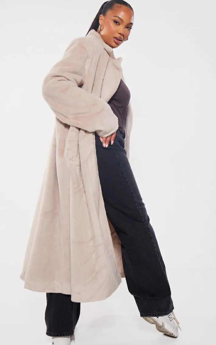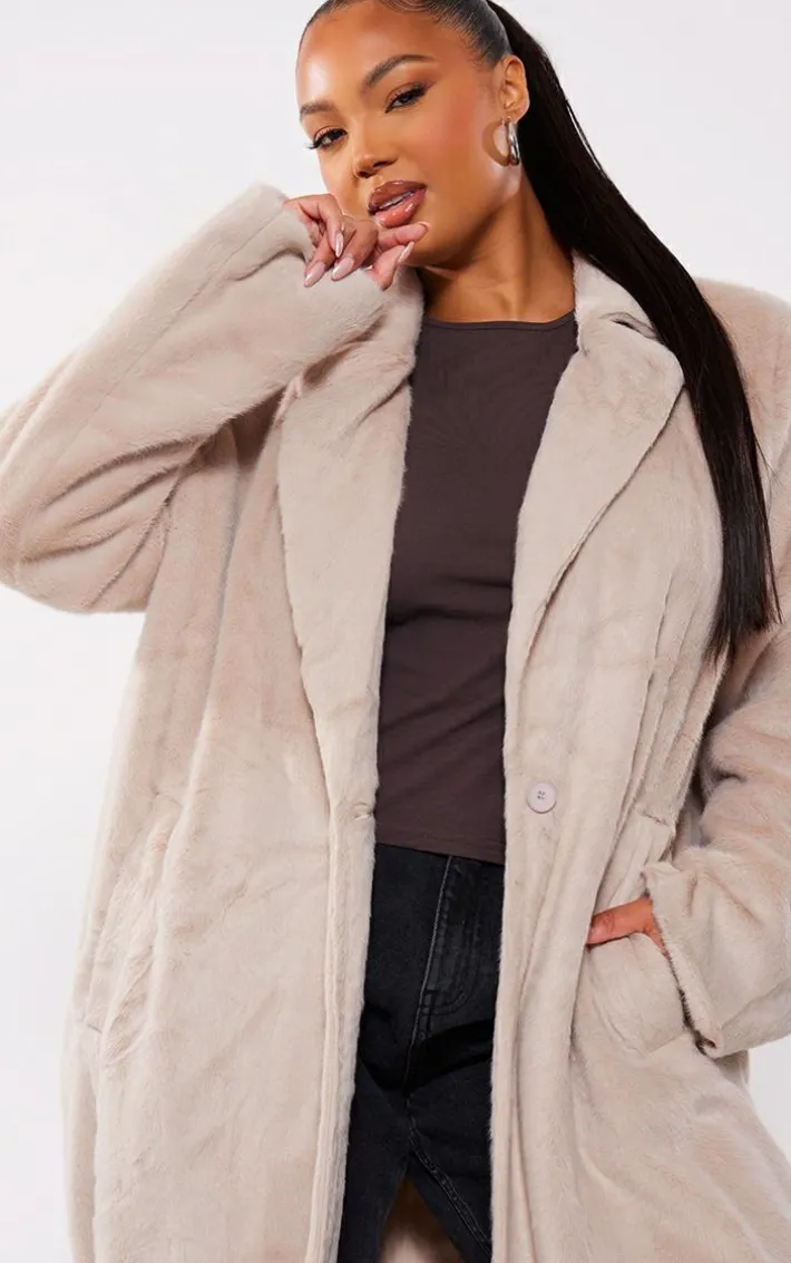Make everyone stop and stare this weekend with this plus beige premium soft faux fur tailored maxi coat. Brought to you in a beige soft faux fur material with a tailored design and pocket details, what’s not to love? Perfect for the cold weather and for visiting some Christmas markets, this plus maxi coat is a must-have. Team with a basic outfit of the day, chunky sneakers and gold accessories for a luxe finish.