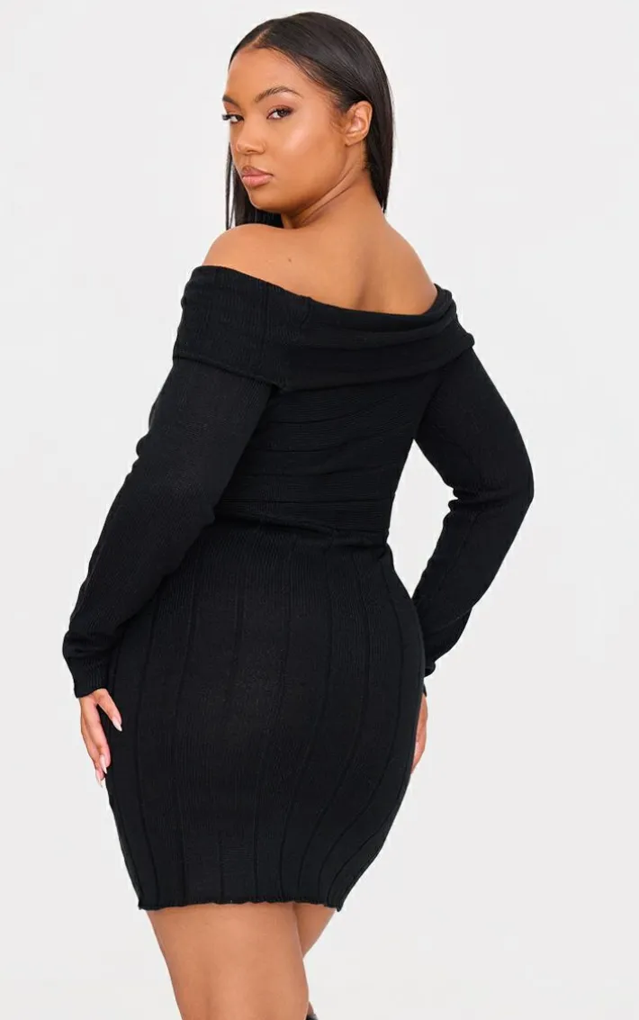 This plus black asymmetric knit fold over mini dress is a must have staple in your wardrobe. Brought to you in a classic black hue, with a cosy knit material and asymmetric fold over design, what’s not to love? Style with a pair of knee length boots and simple accessories for a look like no other.