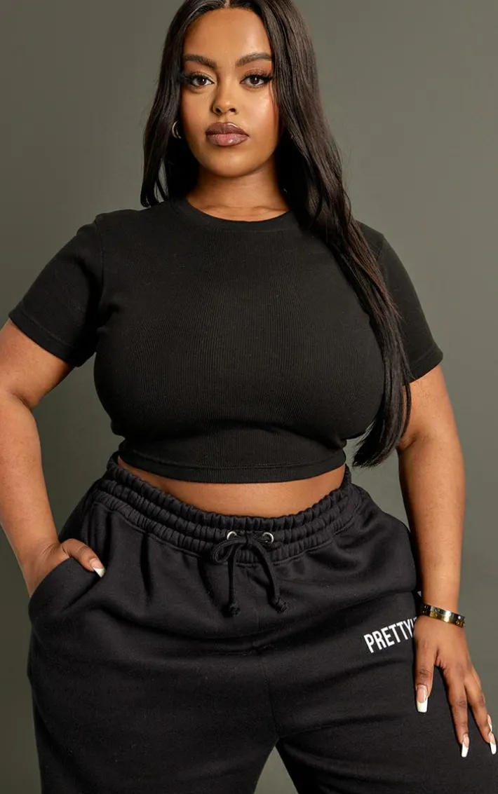 Level up your basics collection with this plus black basic rib short sleeve crop top. This crop top is brought to you in a black ribbed material with short sleeves and a cropped length, what’s not to love? This crop top is everything you need for your new season wardrobe. Just add black sweatpants, box-fresh kicks and accessories to complete the look.