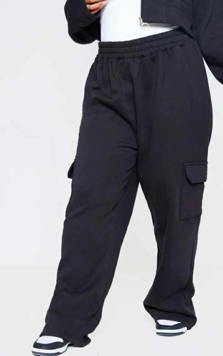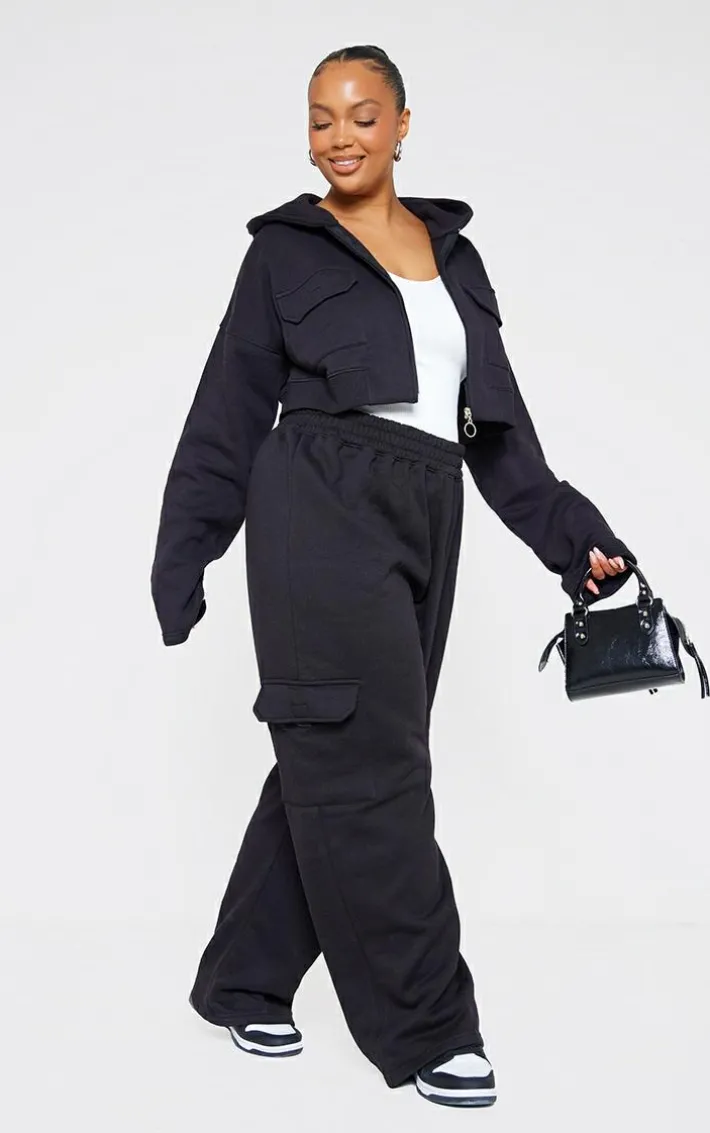 Sweatpants are an essential piece in every s wardrobe and we’re loving these plus black cargo pocket wide leg sweatpants. Made from a black material with a wide leg fit and a high waist, how could you say no? Perfect for those casual days, these plus sweatpants will bring all the comfy vibes to your look. Simply pair the matching hoodie, a green clutch bag and box-fresh kicks to elevate the vibe.