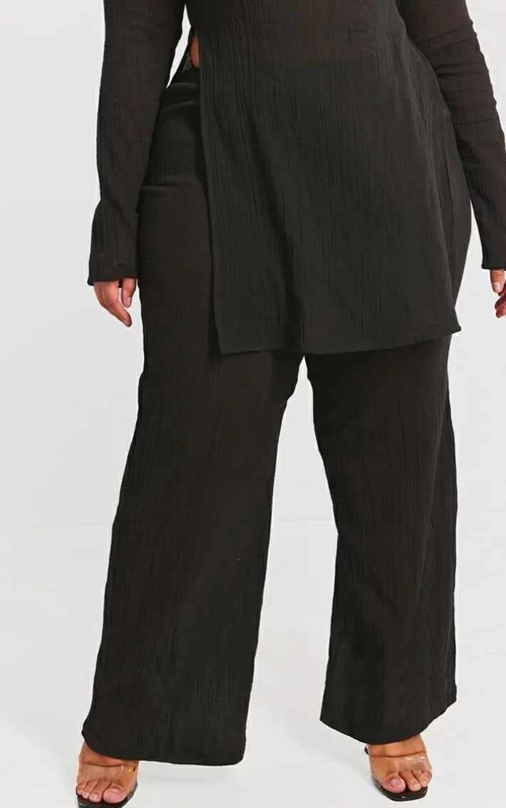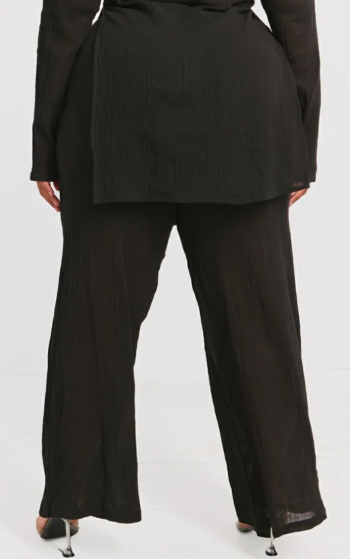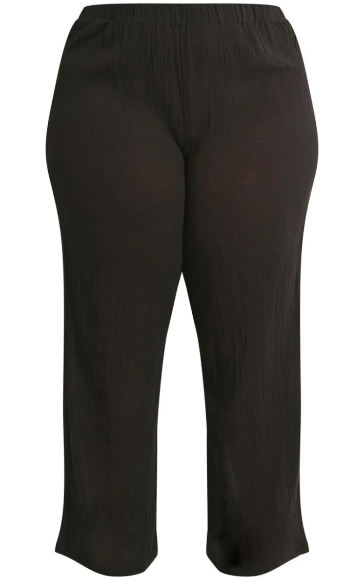 Give your new season wardrobe the upgrade it deserves with these plus black cheesecloth textured wide leg pant. Made from a black cheesecloth textured material with a wide leg fit, how can you go wrong? You will be reaching for these black pants again and again. Style with the matching top, heels and gold accessories for a simple yet chic look we’re loving.