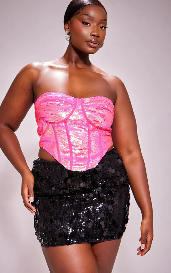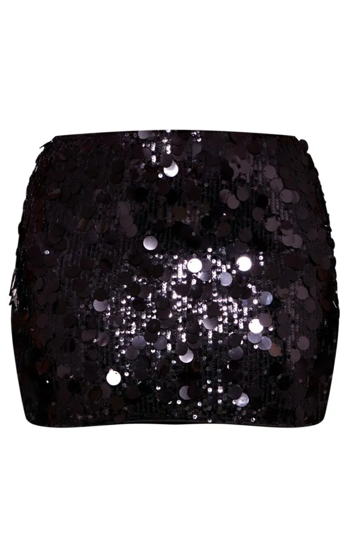 Go for all the glam vibes this season with this plus black coin sequin mini skirt, it is perfect for all your weekend plans. With a black material, coin sequin detailing and a mini length, everyone will be obsessing over this plus skirt. Style with a statement corset top, slip-on heels and a mini bag for a fool proof finish.