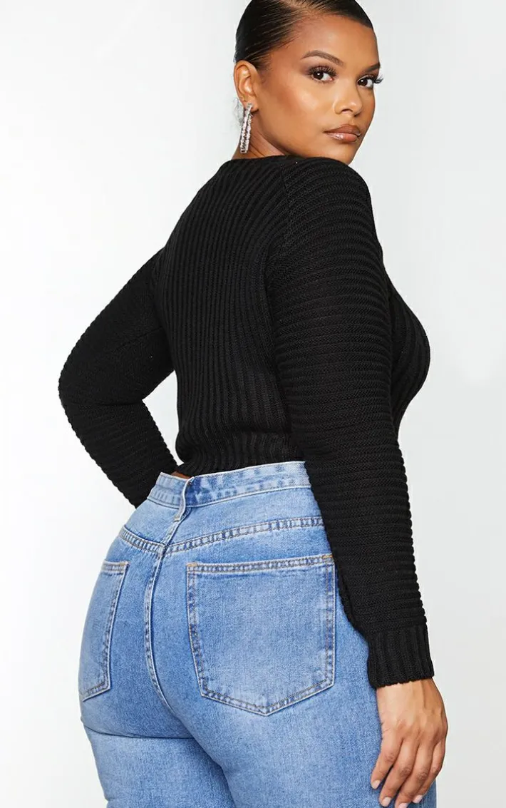 This sweater is at the top of our hit list this season. Featuring a black rib knit material with long sleeves and a cropped length. Style this with split hem bottoms and chunky boots to complete the look.