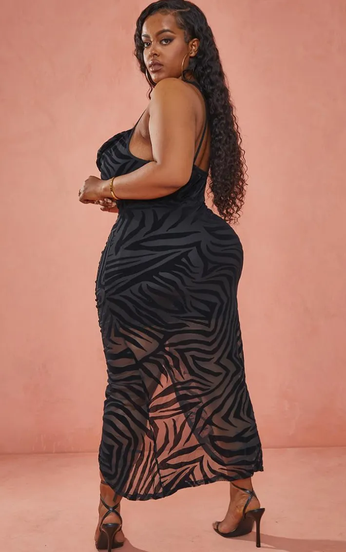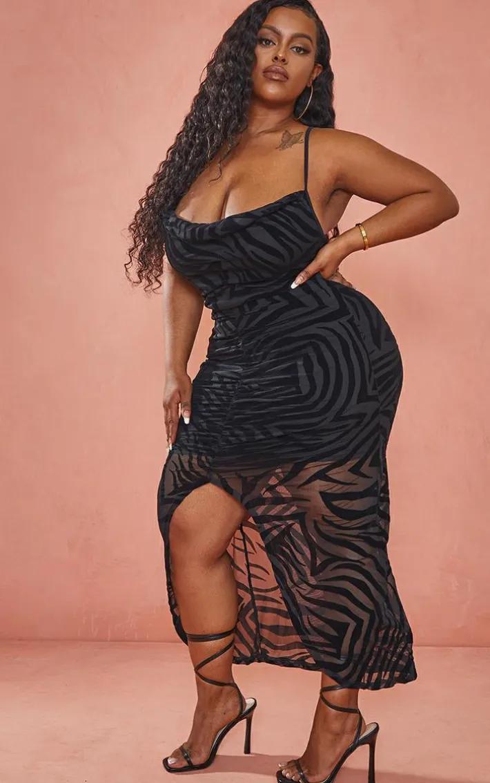 Change up your weekend look with this midi dress. Featuring a black devore material with a cowl neckline and a ruched design, how could you say no? Wear with lace-up heels and and a mini grab bag to earn some extra style points.