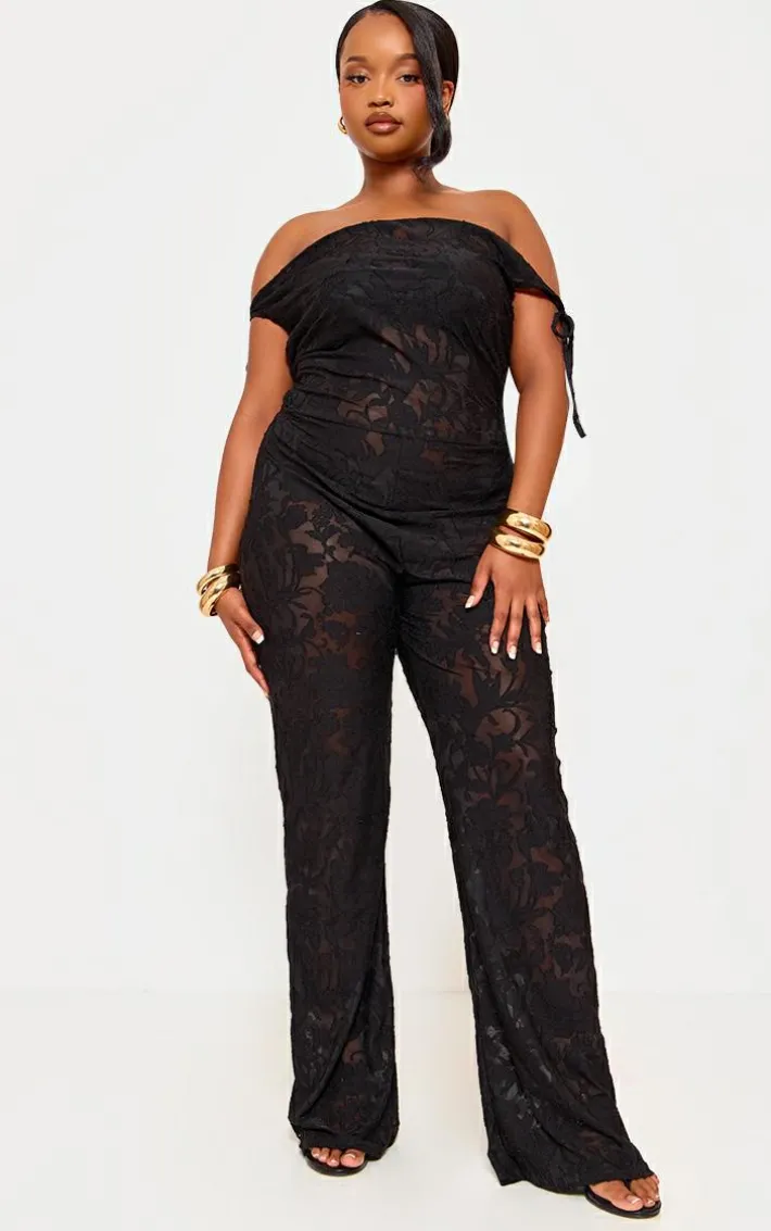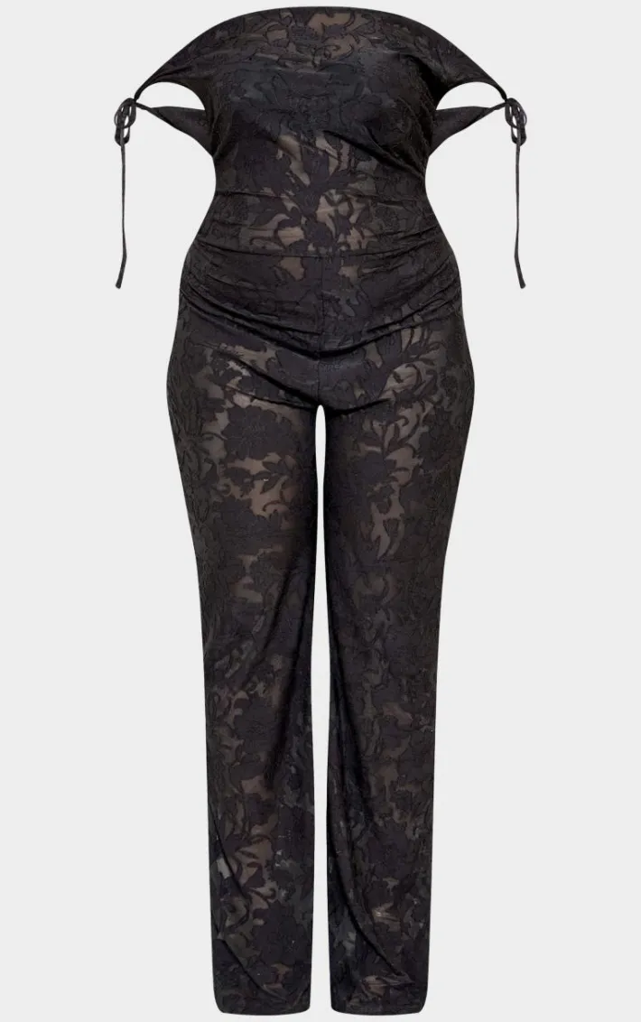 Get ready to have all eyes on you with this plus black devore shoulder tie jumpsuit. Brought to you in a black devore material with a shoulder tie design, what’s not to love? This unreal jumpsuit is sure to earn you all the likes. Team with a pair of heels and your fave statement accessories. We are obsessed.