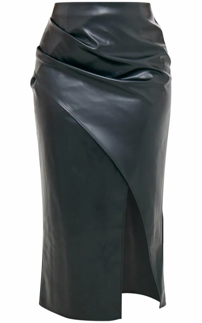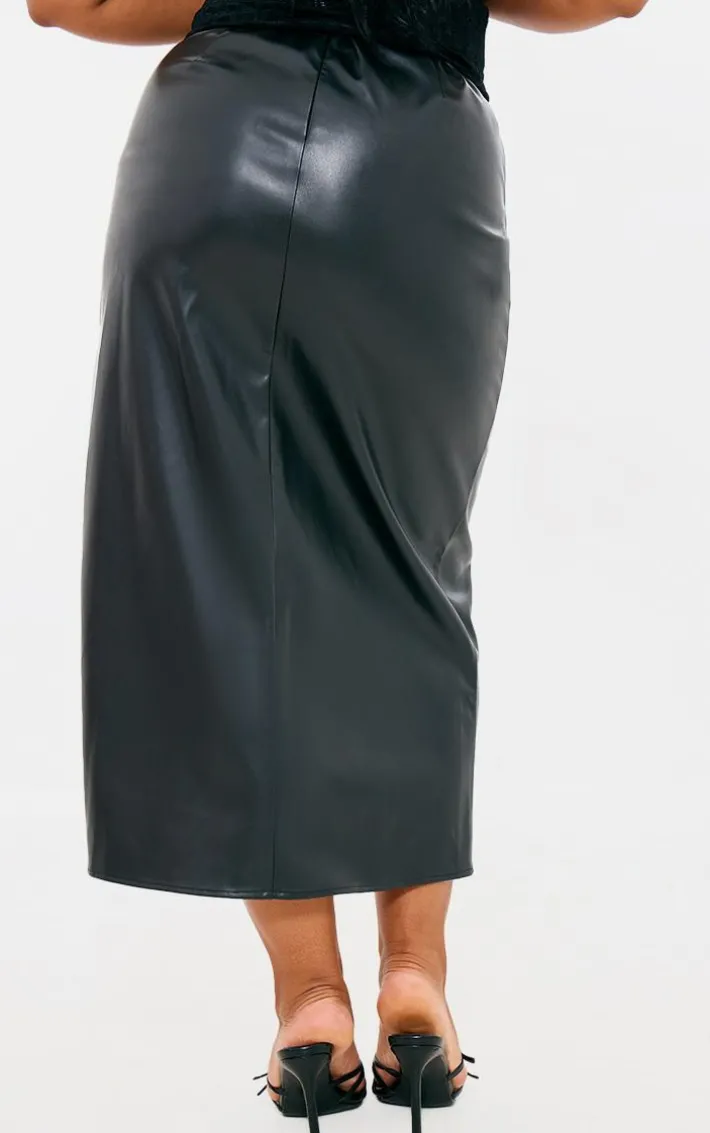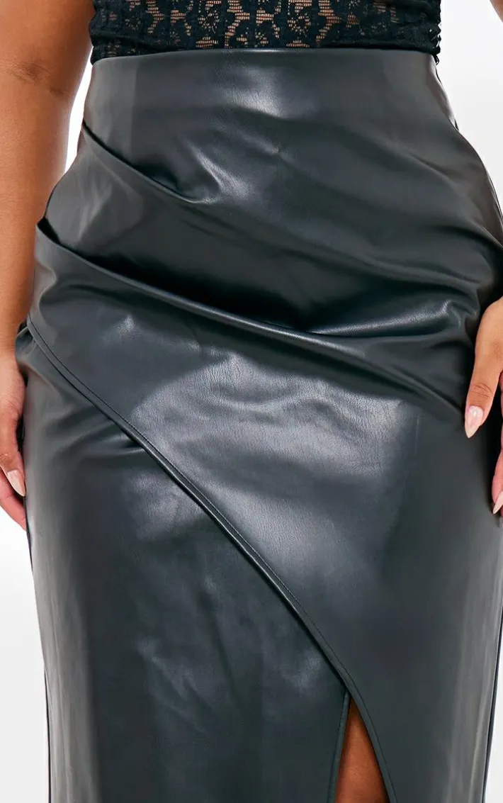 Make weekend styling look effortless with this plus black faux leather asymmetric midi skirt. Brought to you in a black faux leather material with an asymmetric design and a flattering midi fit, how can you resist? Style this midi skirt with a lace bodysuit and heels for a chic look like no other .