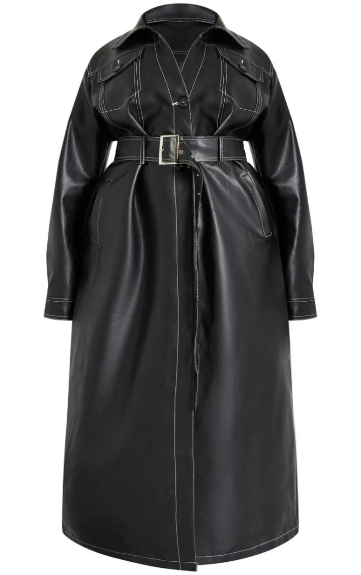 Be the moment with this plus black faux leather contrast stitch split hem trench coat. We’re obsessing over its contrast stitch details, split hem back and black faux leather fabric. Complete this off-duty look by styling your plus trench coat with light denim wash jeans and slip on heels. What’s not to love?