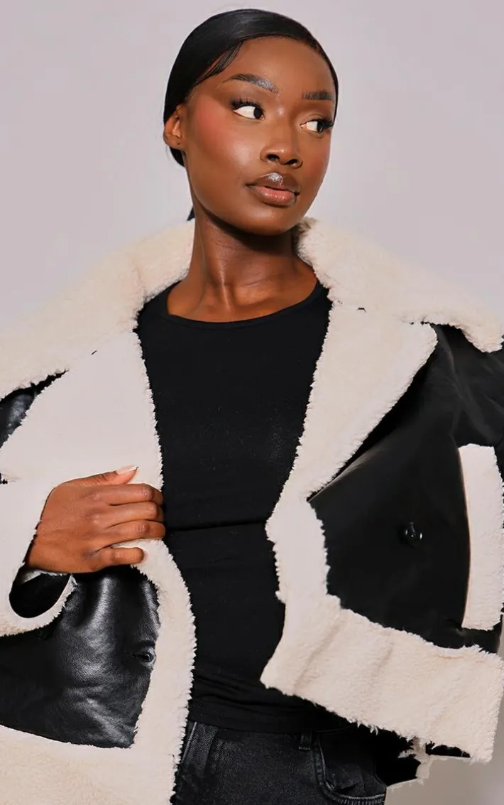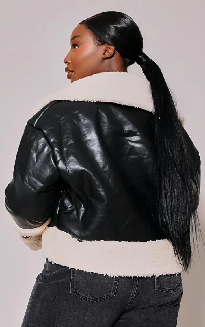 Get your new season look on point with this plus black faux leather faux fur trim coat. Brought to you in a black hue faux leather material with a faux fur trim for those extra cosy feels and a cropped fit, you really can’t go wrong. Layer this faux leather coat seamlessly over your outfit of the day to take your look to awhole new level.