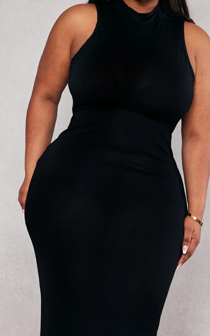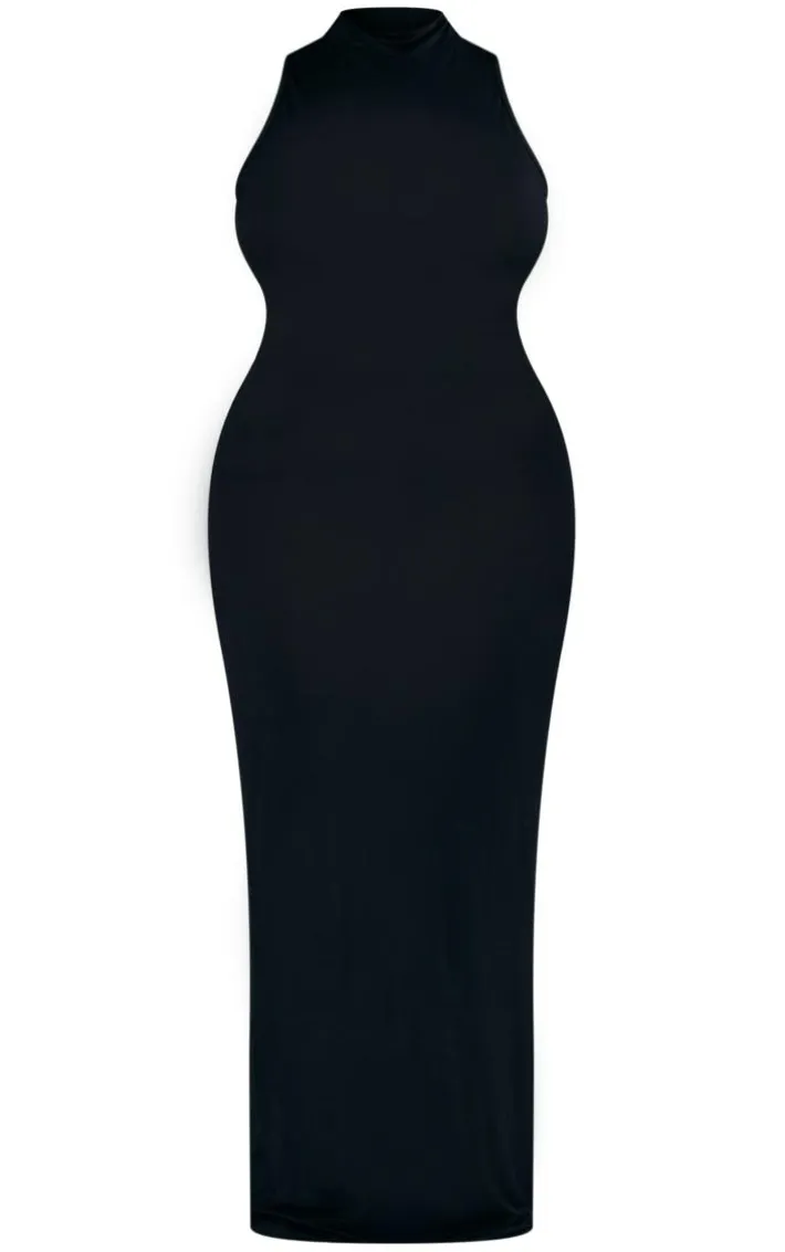 Give your wardrobe a seriously chic update with this midaxi dress. Featuring a black hue material with a high neck and figure-flattering fit, we’re obsessed. Team with a faux fur coat, clear heels and a diamante mini bag for a flawless finish.