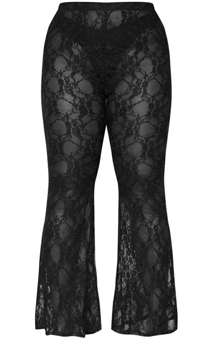 Bring all the drama to your weekend wardrobe with these plus black lace flared pants. Made using a black lace material with a flared design and a figure-flattering fit, you’re sure to be showing off your confident side with these plus pants. Pair with a matching hue corset, heels and your fave accessories for a glam finish.